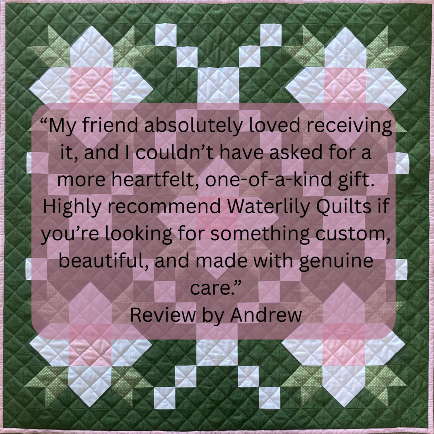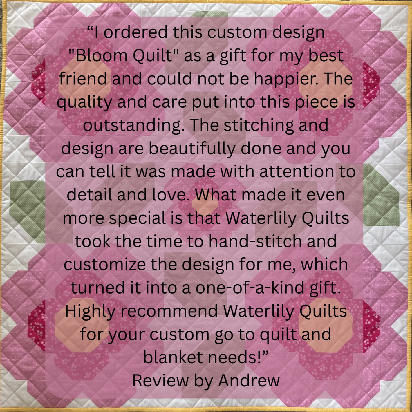 Each quilt is handmade with love and attention to detail with comfort in mind!