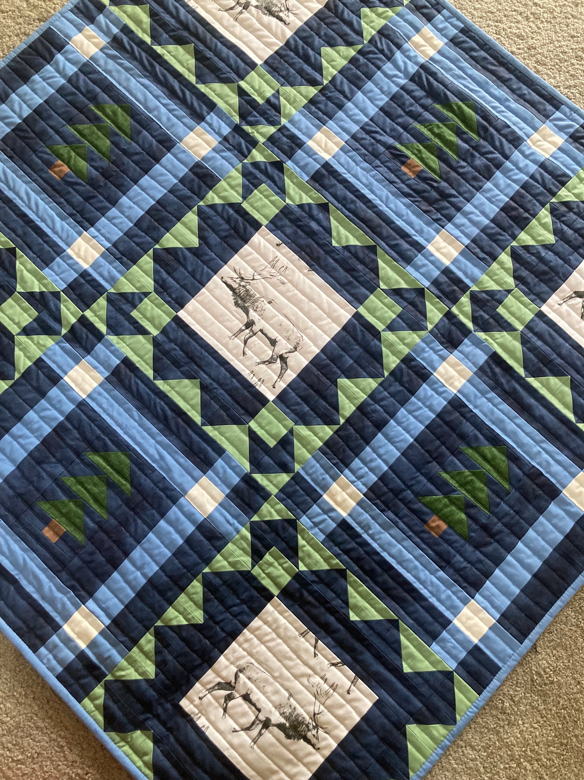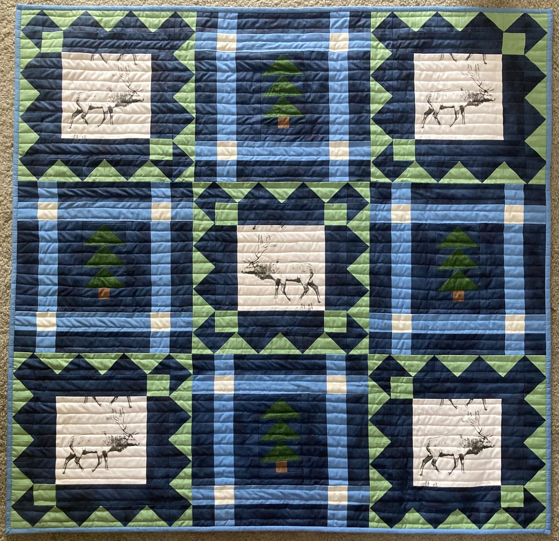 Enjoy gifting this custom Elk Quilt. The one receiving this quilt can enjoy it at home or on the go, any season of the year. This Elk Quilt was handmade with love and care to ensure your friend's little one finds warmth and comfort through the layers of fabrics.
