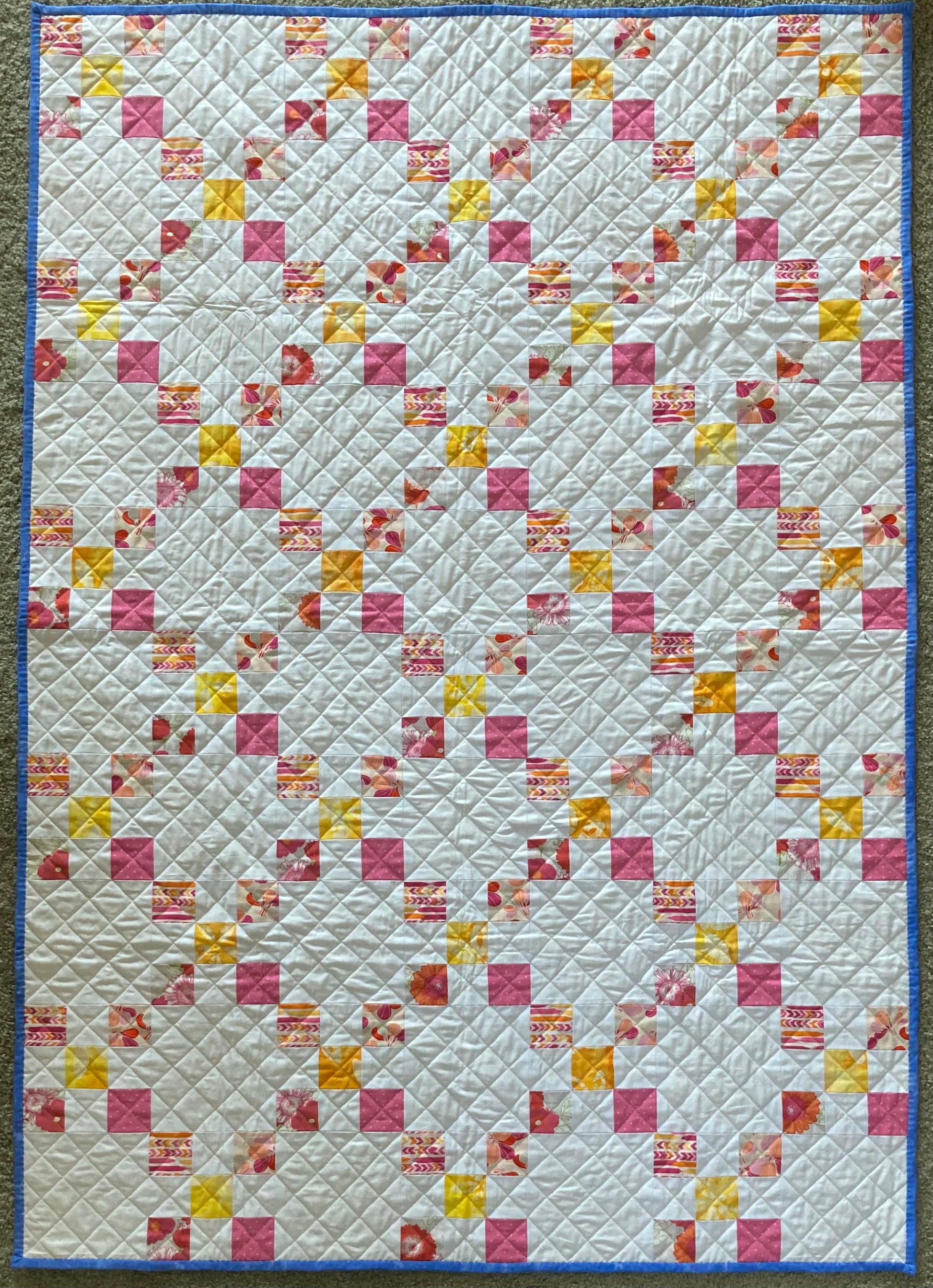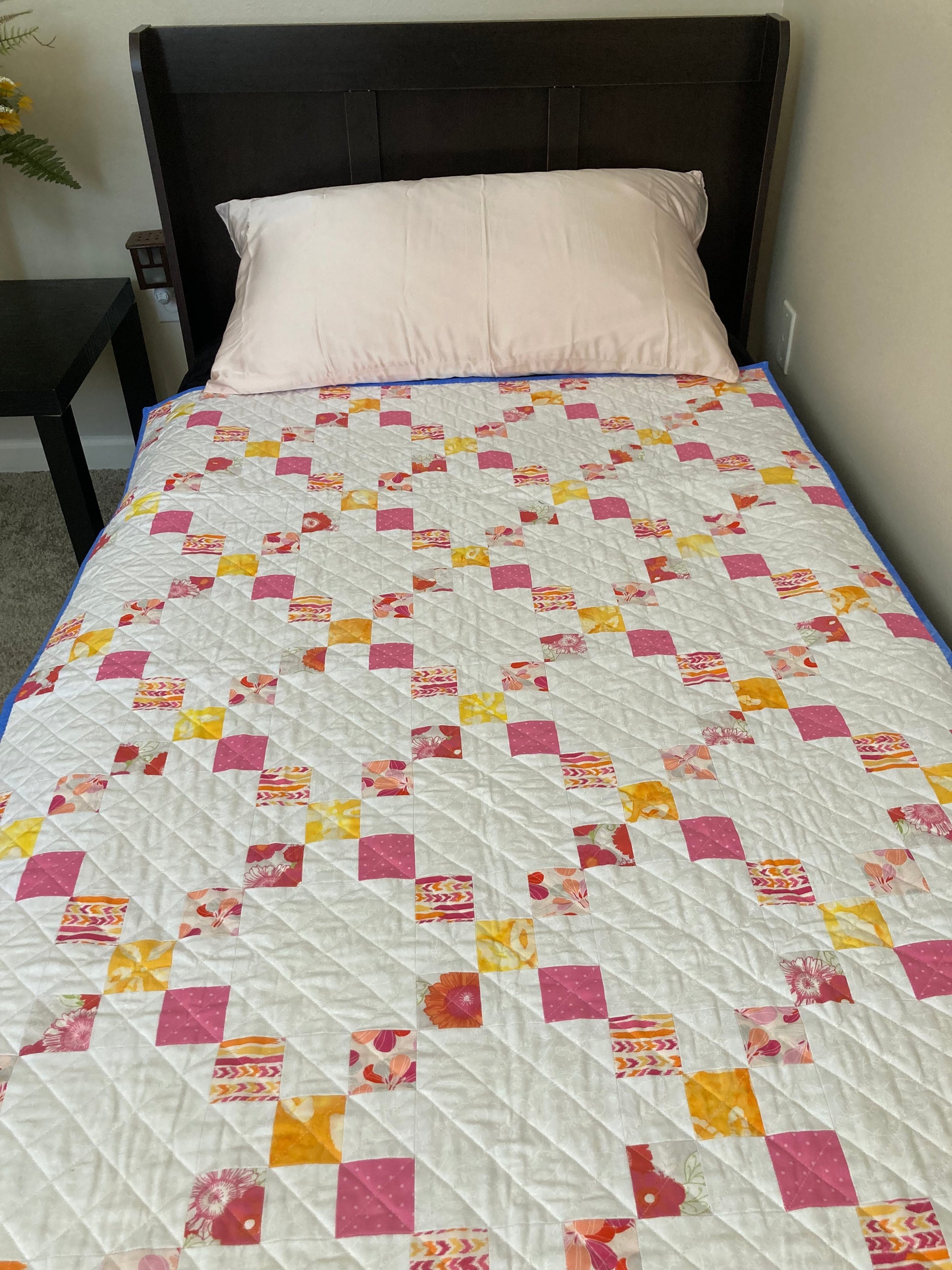 Enjoy Flower Chain at home or on the go, any season of the year. Imagine wrapping up in a colorful, unique and stylish quilt and passing the time in comfort. Each quilt is handmade with love and care to ensure you or a friend find warmth through the layers of fabrics.
